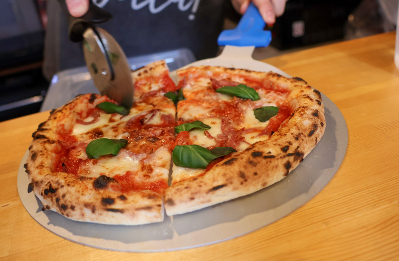 窯から出た瞬間の熱々ピッツァと